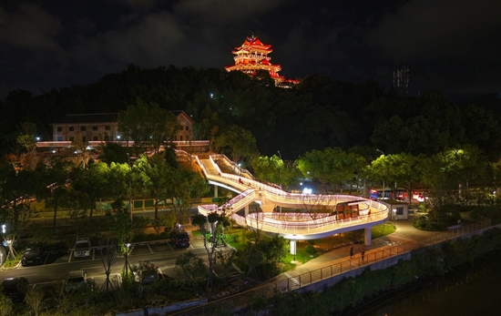 9月17日晚,位于太平街道瓦屿山公园的天桥首次亮灯。天桥贯通瓦屿山公园、车站纪念公园、月河湾公园及月河汽船埠头,是目前老城区唯一一座人行天桥,不仅便利市民通行,也为城区夜景增添新亮点。签约摄影师 潘纯平 摄