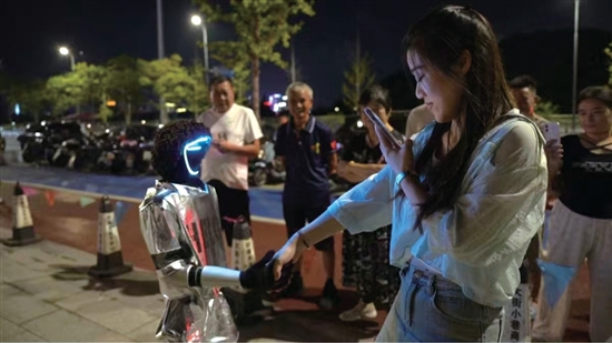 9月18日晚上,九龙汇公园来了一位超人气“科技明星”——宇树科技研发的人形机器人。“大哥、大姐好,‘笨笨’向你们飞吻了。”在公园入口处,宇树人形机器人刚一亮相,便成为焦点。
