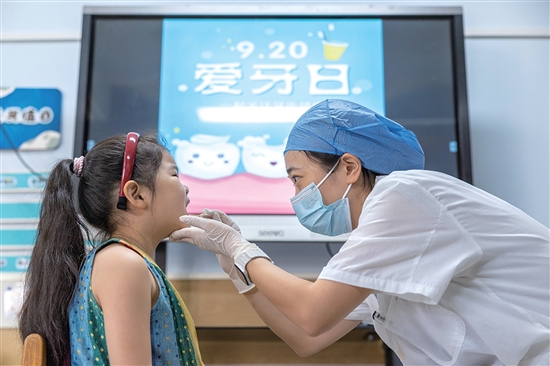 9月19日,在市级机关幼儿园,医护人员正在给孩子们讲解牙齿保健知识,并对他们进行口腔检查,引导孩子们从小养成爱牙护牙、口腔卫生好习惯。