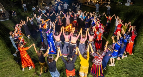 而将整场活动推向高潮的,是点燃的篝火。当火焰腾空而起,现场瞬间被热情点燃。在动感音乐的环绕下,大家手拉手围着篝火尽情舞蹈,一曲接着一曲,彻底将此处化作欢乐幸福的海洋。村民叶俊标只是在附近散步,被晚会现场热烈的气氛吸引,情不自禁地加入到这场欢乐的盛宴之中。“刚开始舞步都跟不上,但特别有意思!虽然热得满头大汗,却能真切感受到民族团结的强大力量。”