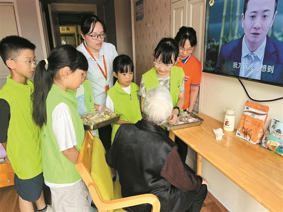 我觉得养老院的爷爷奶奶们非常欢迎我们的到来,因为在我们表演节目过后他们总会送上热烈的掌声。我也终于明白,月饼不只是月饼,它还代表着我们的爱。