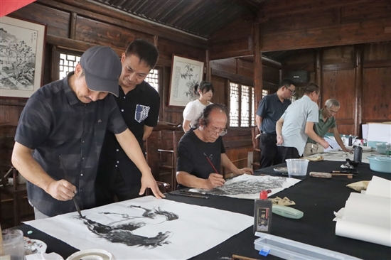 10月6日,箬横镇美术家协会在当地高龙书院内开展中秋笔会活动,吸引不少在此游玩的市民驻足围观。