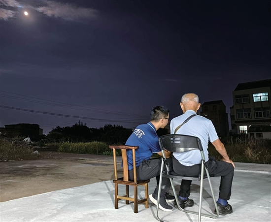 @徐慧极:中秋节,一家人在滨海老家聚餐,饭后我得意地向爷爷显摆拍到的月亮和日出照片。