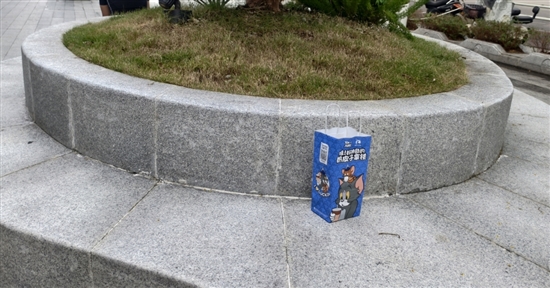 近日,我市各个公园、商超圈内人流增加,不文明现象也有所抬头。在市区某商圈的公共休息区内,有市民将奶茶杯、纸袋等物品随意地丢弃。