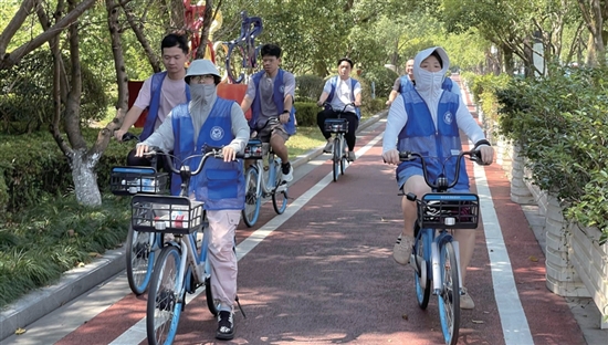 太平街道三星社区组织环保志愿者开展“乘风而行 骑迹出发”低碳公益活动。志愿者们骑共享单车前往五龙山公园,并捡拾沿途的矿泉水瓶、烟蒂、塑料杯等废弃物,以实际行动倡导绿色出行。