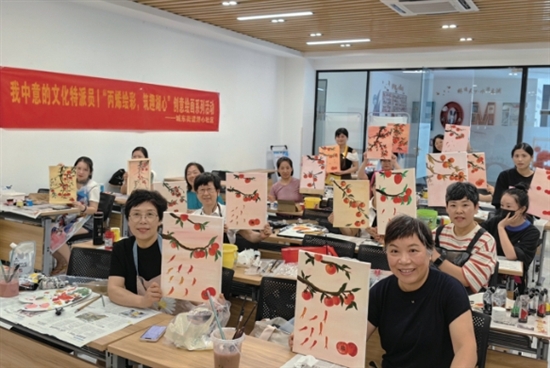 秋意渐浓,霜降将至。为丰富社区居民文化生活,让大家感悟时节之美,城东街道湖心社区开展以“好柿成霜”为主题的丙烯画第三次课程。课上,居民们用斑斓的色彩描绘丰收的喜悦与深秋的祝福。
