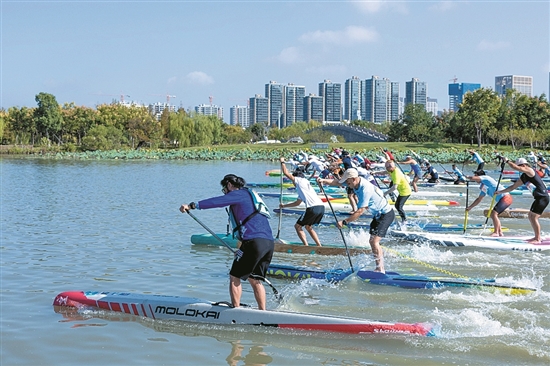 桨板运动,就是站在一块像冲浪板的板子上,用一支桨在水面上划动前行,站着划、坐着划、趴着划皆可。它既考验平衡能力,也考验速度和耐力,超级刺激!