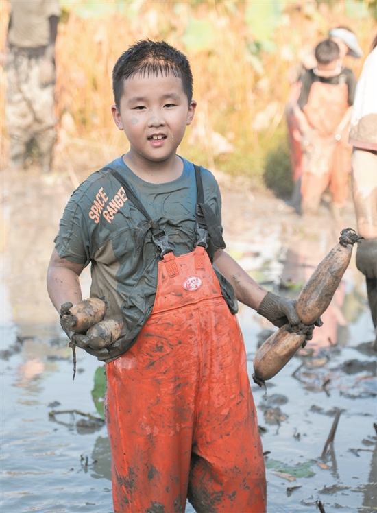 十月一日,国庆节。我参加了采莲藕(ǒu)活动。