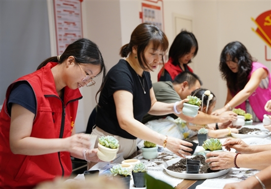 现场居民听得津津有味,踊跃提问,老师逐一耐心解答。讲座结束后,居民在老师的指导下栽种多肉植物。大家小心翼翼地将植株移入盆中,眼神中满是期待与喜悦。