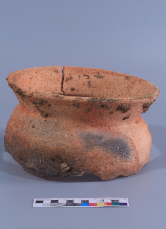 遗址出土的夹砂陶釜。