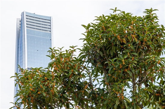 今年,温岭的桂花姗姗来迟。受前期天气因素影响,大面积桂花开放推迟至10月底。10月29日,记者在东辉公园看到,成片桂花树竞相绽放,浓郁甜香,沁人心脾,成为秋日里一道怡人的风景。