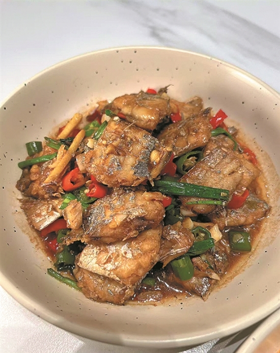 开渔后的第三天放学,我刚进家门就被一股鲜气拽(zhuài)到了餐桌前——妈妈正把一盘红烧带鱼端上桌,油亮的酱汁裹(ɡuǒ)着银白的鱼段,再加上红绿辣椒与葱花点缀(zhuì),真是色香味俱全,连空气里都飘着大海的味道。