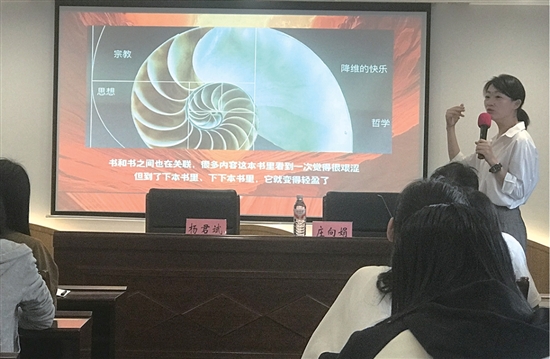 “读者就是‘雅贼’,每本书都有好东西等你去‘偷’。”“看更多的书,真的有助于更好地工作,常常会在几秒钟内,就在脑海里引发一场思维震荡,对我的工作非常有帮助。”讲座中,庄向娟金句迭出。最后,她以一句“对于人生这趟旅程来说,书可以成为我们的‘精神货币’,让我们触达更辽阔的天地”,与读书社成员们共勉。