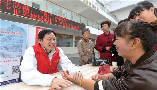 本报讯(记者程以琳/文 徐伟杰/图)11月10日上午,温峤镇中心卫生院内人头攒动,热闹非凡。“糖尿病与幸福感”主题活动正在这里开展,吸引了众多居民参与。