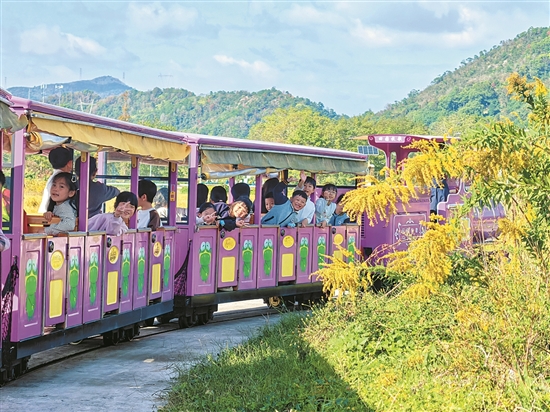 回校时,我书包里揣着薯片,头发上沾着花香。老师笑着说:“快乐够甜到下周啦!”可不是嘛——这趟秋游像裹(ɡuǒ)了糖的栗子,咬开全是冒泡泡的开心,连梦里都飘着小火车的鸣笛呢!