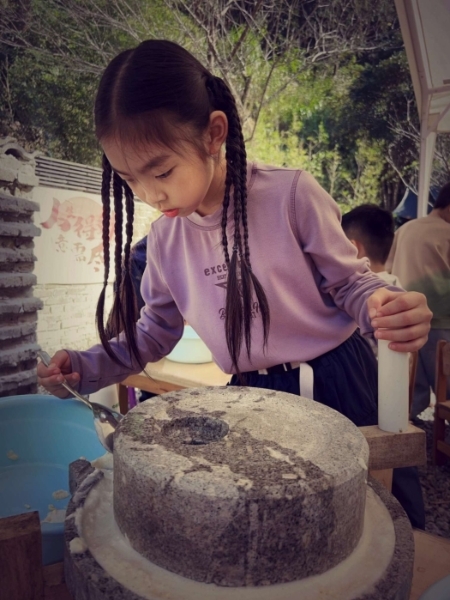 在营地,我学会了用指南针,跟着它找小路太神奇了!我们还认识了好多植物,教练说有的草能驱虫,我听得入了迷。最有意思的是做古法豆腐,我和同学一起推石磨,胳膊都酸了,才磨出白白的豆浆。看着豆浆慢慢变成嫩嫩的豆腐,我们开心地跳了起来。把豆腐带回家给家人尝尝,大家都夸好吃,我特别有成就感。我们还画了原木画,我给小鸟画了彩虹翅膀,教练说我像个小画家呢!