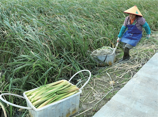 11月18日,新河镇郑洋新村,农户在收割冬季茭白。