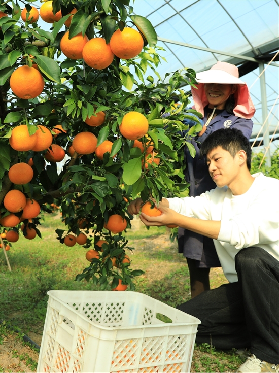 11月21日,东浦农场亮来家庭农场的“红美人”迎来采摘期。今年得益于风调雨顺的好年景,加上农户的精心管理,该农场60多亩“红美人”喜获丰收。由于橘子品相佳、糖度高,深受消费者青睐,呈现产销两旺的良好态势。记者 周学军 摄