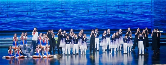 随后,小合奏《夜深沉》《望川》、民乐合奏《天山之歌》、合唱《如愿》等18个节目依次登场。同学们以饱满的激情释放青春活力,展现艺术才华,绘就了一幅“和而不同、美美与共”的浙江艺术教育新图景。其中,来自台州全员美育学校——玉环文兴小学的微型情景音舞诗剧《我的梦》,从独臂女孩追寻艺术梦想的故事切入,展现了学生们在音乐中收获快乐、实现成长的历程。表演中别出心裁地设计了互动环节,文兴小学的学生们从台下过道吹响口琴,走向舞台。在百人合奏的感染下,不少观众也拿起座位上提前放置的口琴,情不自禁地加入演奏。当《我和我的祖国》旋律响起,全场观众自发高歌,用真挚的歌声表达浙江学子与祖国同心、与时代同行的坚定信念。