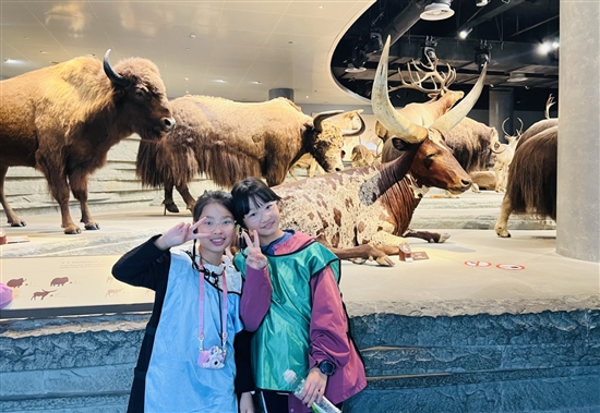 第一站是上海自然博物馆。一进馆,巨型恐龙骨架便震撼了我们,霸王龙的獠牙仿佛带着远古的嘶吼。跟着带队老师,我们在“演化之道”展区穿梭。从寒武纪的三叶虫化石到第四纪的剑齿虎标本,生命繁衍的壮阔历程一一展现在我们眼前。