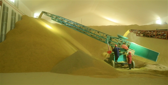 11月25日,箬横粮食储备库,稻谷正顺着机械设备的输送带,源源不断地涌入仓库。