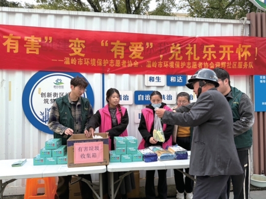 市环保志愿者协会迎辉社区服务队联合市环保志愿者协会举办“‘有害’变‘有爱’,兑礼乐开怀”活动。居民们提着“有害垃圾”前来兑换礼品,用实际行动为环保助力。