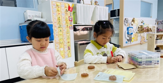 本报讯(通讯员张露丹文/图)秋风吹落满树金黄,东部新区幼儿园大班的孩子们完成了一次从自然探索到社区关怀的温暖实践。他们利用校园中飘落的无患子果实,亲手制作成手工肥皂,并赠送给社区劳动者。