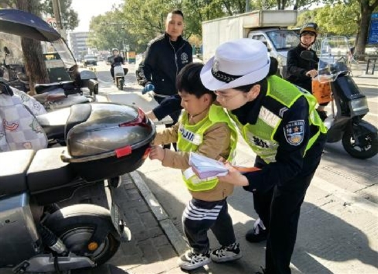 此外,交警还指导孩子们为停放在路边的电瓶车贴上反光条,并讲解反光条在夜间如何保护骑车人的安全,使孩子们在实践中深刻理解交通安全的重要性。