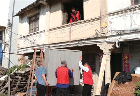 10多名党员志愿者有的换门窗,有的搬家具,俨然给小琪家来了一次“乔迁”。为方便大件家具搬入,大家默契地将二楼窗户更换留到最后操作。众人合力将1.5米长的整套床具拆解,楼上楼下接力传递。仅10多分钟,床垫和床架便被顺利安置进房间。