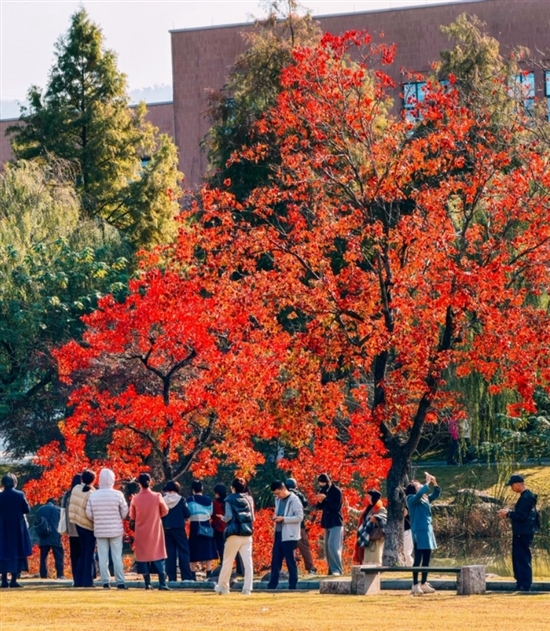 @顾高智:青少年宫附近的网红树吸引了很多人来打卡。