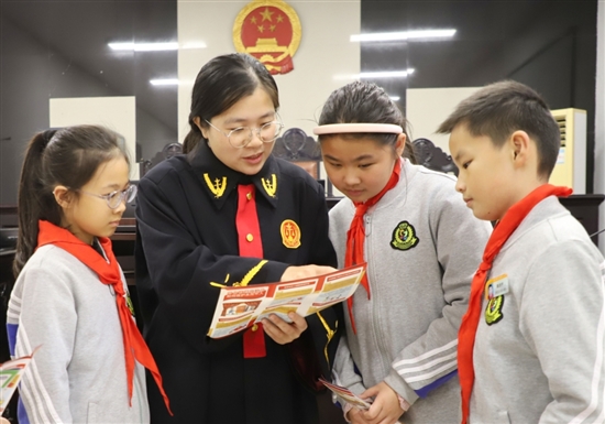 松门法庭的法官在给学生们讲解《未成年人保护法》等相关知识。