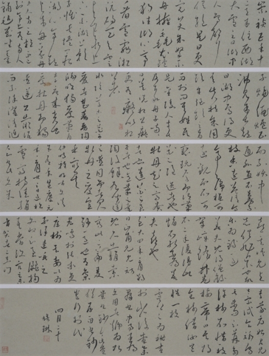 这名年轻学子的草书创作,并非浮于表面的挥洒,而是深深植根于传统的沃土。其作品能清晰地追溯至唐代孙过庭的《书谱》与书圣王羲之的《十七帖》法脉。在她的笔下,古典草书的法度与精神被忠实地继承与再现,点画使转皆合法度,线条流畅而富有弹性,展现出一种超越年龄的典雅气质。