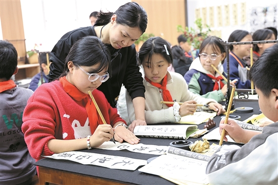 温岭市新河镇高桥小学在书法课堂开展 “学清廉(lián)、写清廉” 主题实践(jiàn)活动,以笔墨(mò)为媒传递廉洁理念。