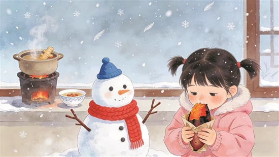 亲爱的小朋友们,冬天悄悄走来啦!你看,窗外可能飘着细细的雪花,手里捧着暖暖的烤红薯,和小伙伴堆起的雪人戴着红红的围巾,妈妈煮的姜汤冒着甜甜的热气……这些冬天里的小美好,是不是像一幅甜甜的画呀?