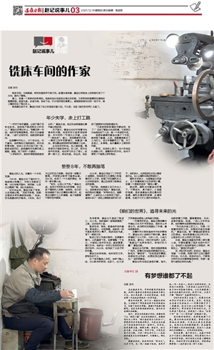 走出铣床车间,耳畔的轰鸣声渐渐消散,但那个墙角的光影却在我脑海中挥之不去。这不是我第一次采访劳动者,却是我第一次在机床旁遇见一位写作者。