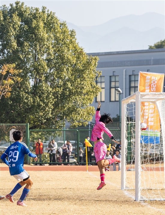 此次温岭队阵容来自各行各业,既有企业员工、个体经营者,也有教师、教练和学生,年龄跨度较大,形成了“以老带新”的团队结构。打进唯一进球的29号江犇出生于2009年,目前还是泽国中学的学生。谈及这一关键进球,他有些腼腆。“多少有点运气加持,球飞过来我就顺势顶进去了,当时眼里只有球。”他认为本场表现中规中矩,未来还要继续打磨技术,更好地把握得分机会。