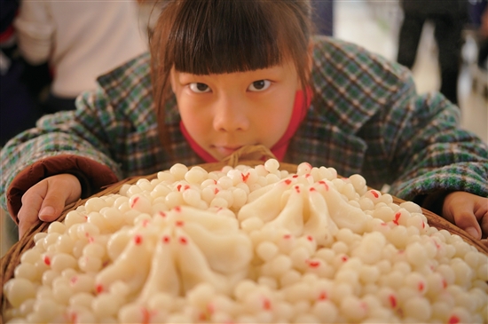 “咯咯啼”是石塘箬山一带独具特色的美食,由山粉制作而成,外形酷似小鸡,寓意着团圆和吉祥。孩子们在老师的指导下,迫不及待地开始动手制作。他们将山粉和水按一定比例混合,揉成光滑的面团,然后分成一个个小剂子。接着,孩子们将剂子搓圆、压扁,包入香甜的馅料,再小心翼翼地捏出小鸡的形状,最后点缀红豆当作眼睛,用剪刀剪出小鸡的嘴巴和翅膀。在孩子们的巧手下,一个个栩栩如生的“咯咯啼”逐渐成形,它们围坐在一起,仿佛在欢快地歌唱,为冬至增添了一份别样的温馨。有的孩子还给自己的“咯咯啼”取了可爱的名字,充满了童真和创意。活动现场洋溢着欢乐和温暖的氛围。