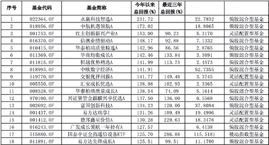今年以来业绩排名靠前的主动基金