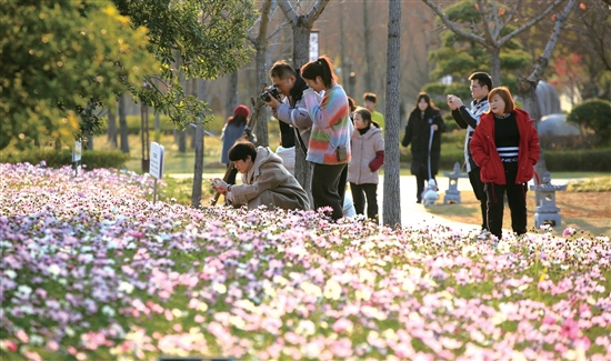 12月27日,市区九龙汇公园,众多市民在观赏秋英。
