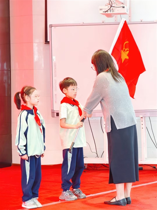不过,最甜的,还是在十月份学校举行的第二批少先队员入队仪式上,我作为中队长接过队旗的那一刻。