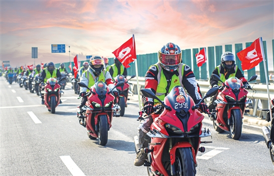随后,一场精心组织的环湖巡游将活动推向高潮。在保障团队的专业指引下,由数百名骑士组成的车队从厂区浩荡出发,驶向风景秀丽的龙门湖。车队沿湖骑行,形成了一道流动的风景线,以实际行动践行了“分享美好”的骑行文化,也诠释了“骑行万里,平安第一”的共识。