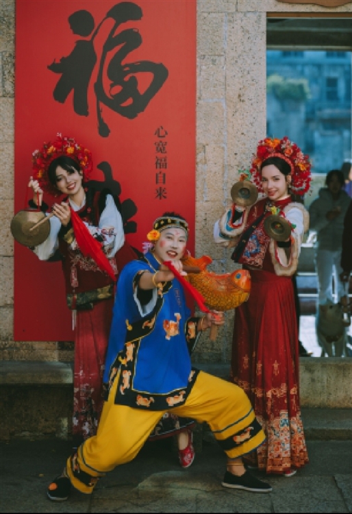 @阿牛:跨越山海,在温岭石塘里箬村,让外国朋友把东方簪花的浪漫戴在头上。
