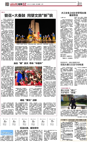 上午9时,月河天地文化街区早已被红彤彤的灯笼、“福”字装点得喜气洋洋。两条金色长龙在孩子们的舞动下翻腾跃动,拉开了庙会的序幕。紧接着,一群“小狮子”摇头摆尾地登场,憨态可掬的舞狮表演引得围观家长笑声不断;最惊艳的当属压轴的“川剧变脸”,演员在眨眼间变换脸谱,孩子们瞪大了眼睛,掌声如雷。