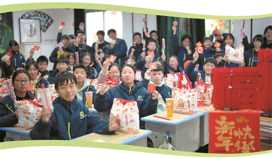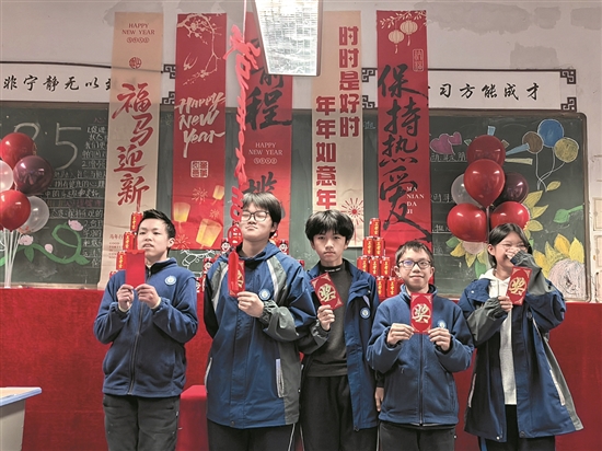 元旦前夕,泽国五中组织班班乐活动,其中八(3)班别出心裁,给同学们准备了新年新气象红包,抽到幸运红包的同学喜笑颜开,纷纷说这份别致的祝福为新的一年带来了满满的好运与期待。通讯员 王卫红 摄