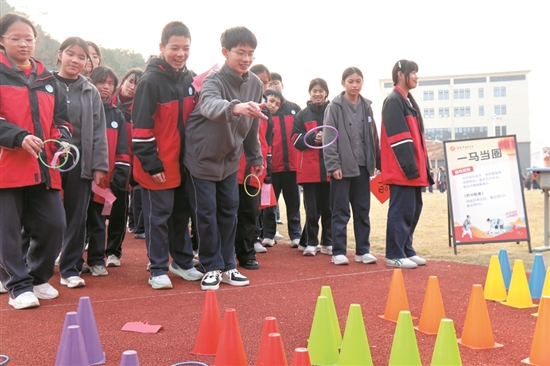 近日,以“承古纳新 心向暖阳”为主题的元旦游园活动在温西中学热闹开启。活动精心设置了传统文化体验类和传统游戏活动类两大板块,学生们在游园盛会中,浸润传统文化,乐享协作时光。通讯员 张宁 摄
