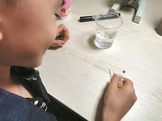 我先制作了2个玻(bō)片,分别为沙滩水域玻片编号为①,滩涂水域玻片,编号为②。