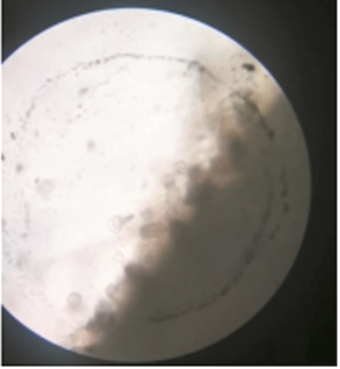 通过显微镜观察,我在滩涂和沙滩水域的海水中都发现了微生物,微生物有的像小逗号,有的像小圆点,飞快地游动着”,但滩涂水域的微生物比沙滩水域的微生物多。如下图: