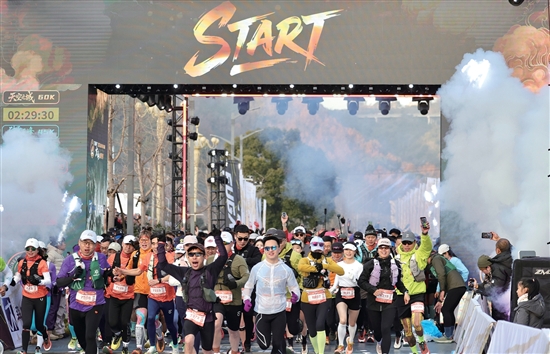 其中,60公里“天空之城”组别累计爬升达3309米,堪称极限挑战。选手们穿越被誉为“邑之镇山”的方山-南嵩岩风景名胜区,登顶后可俯瞰700亩“空中花园”奇景。赛道后半段延伸至古镇温峤,这里是浙东唐诗之路的重要节点,跑者在山野疾行间,既能感受楼旗尖的云海仙境,也能领略上保山的冬日韵味。