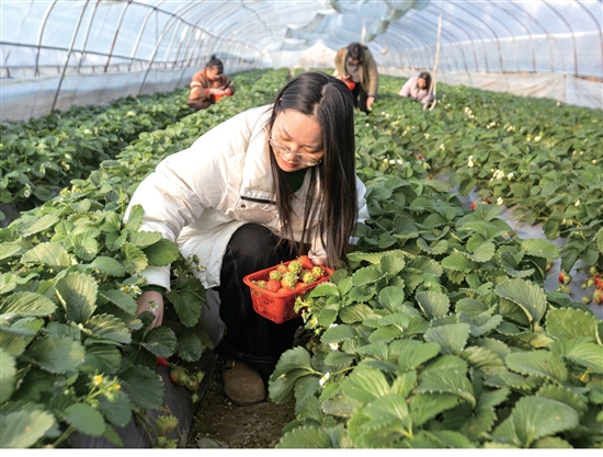 当前正值草莓上市时节,温峤镇北珠村老杨草莓采摘园的10余亩草莓陆续成熟。得益于精细化管理,草莓果形饱满、色泽鲜亮,吸引了众多市民与采购商前来采摘收购。
