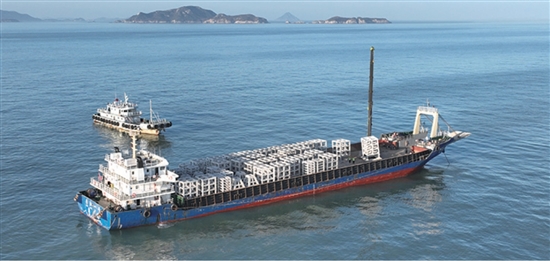 本报讯(记者朱丹君 实习生陈亭熹/文 记者陈俊杰/图)为持续提升海域生物多样性,系统改善和修复海洋生态环境,1月14日起,市海洋经济发展局在“积洛三牛”海域国家级海洋牧场示范区有序开展人工鱼礁投放作业。预计1至2个月内,总量达4.7万空方的鱼礁群将全面布设完成。